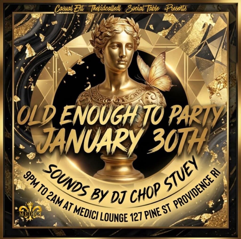 Old Enough to Party is an elevated nightlife experience hosted at Medici Lounge in downtown Providence. Join us on January 30th for an evening of music, atmosphere, and grown energy, curated for those who know how to enjoy a night out.